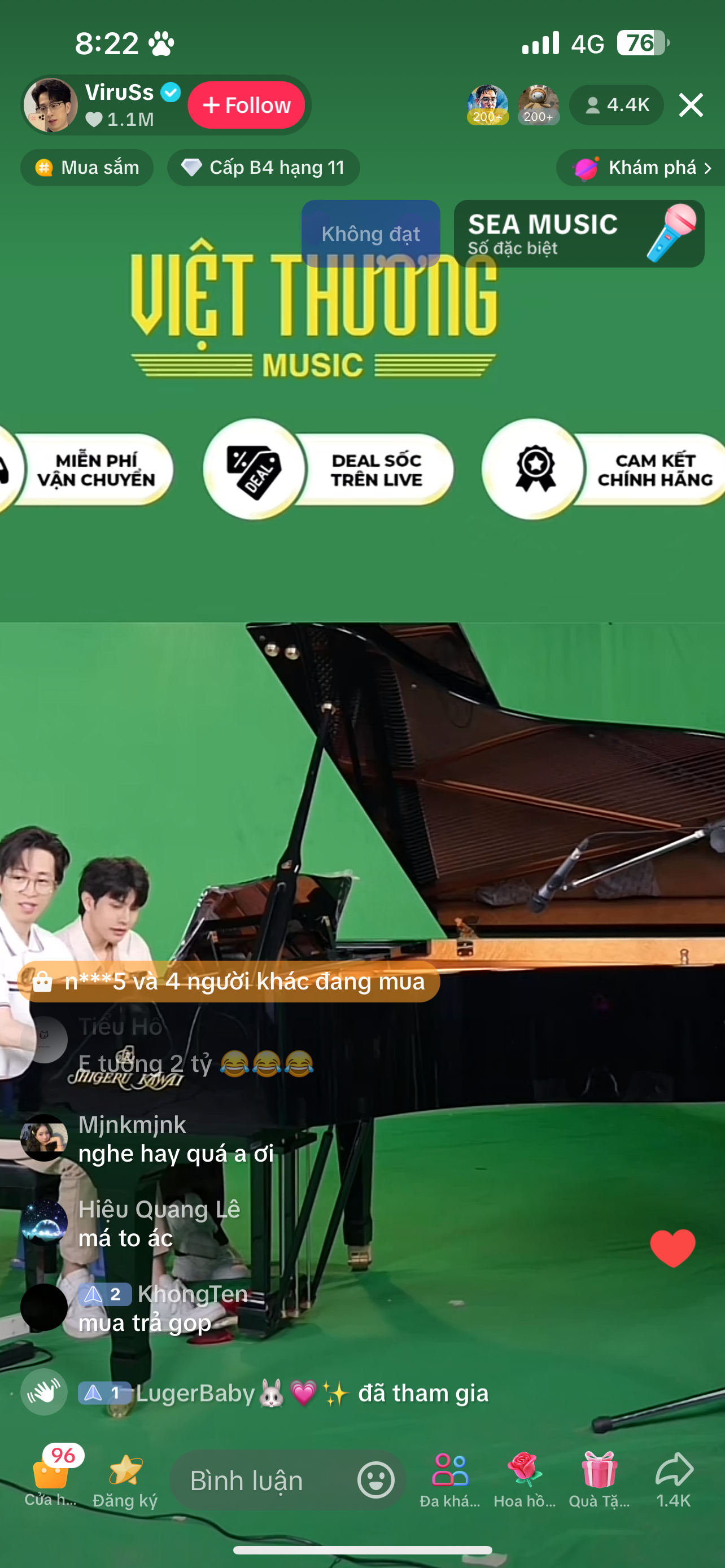 Trong hai ngày 16/7 và 17/7, streamer – nhạc sĩ Hoàng ViruSs đã có buổi livestream đặc biệt trên nền tảng TikTok trong khuôn khổ sự kiện Mega Live, nơi anh trải nghiệm và chia sẻ cảm nhận về cây đàn grand piano cao cấp Shigeru Kawai SK-5. Sự kiện này đã thu hút hàng