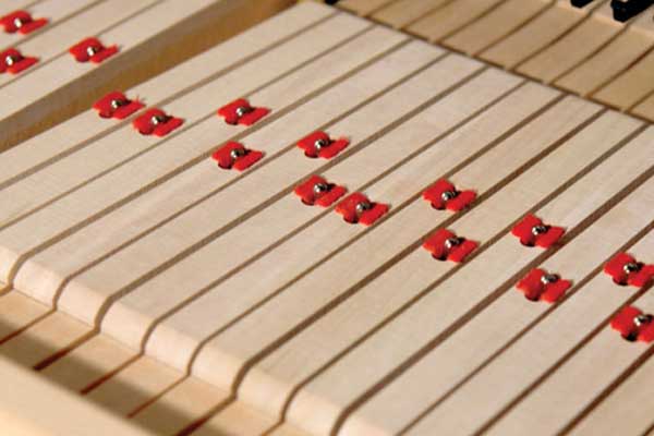 Agraffes của Shigeru Kawai được gia công từ những thanh đồng thau nguyên khối, nhằm đảm bảo độ chính xác tuyệt đối, tương tự như các agraffes được trang bị trên cây đàn đại dương cầm EX Concert Grand danh tiếng của chúng tôi. Chi tiết nhỏ nhưng quan trọng này giúp các dây đàn được định vị chính xác, tạo ra âm thanh mạnh mẽ và rõ ràng.