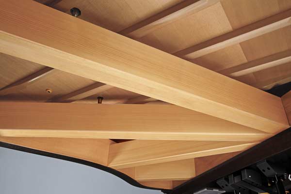 Gỗ Vân Sam nổi bật nhờ khả năng truyền tải và lưu trữ năng lượng âm thanh một cách tuyệt vời. Tuy nhiên, loại gỗ này thường không được dùng cho các kết cấu do chi phí cao. Tuy nhiên, với mỗi cây đàn piano Shigeru, tất cả các thanh dầm phía dưới đàn đều được làm từ gỗ Vân Sam nguyên khối chất lượng tốt nhất.
